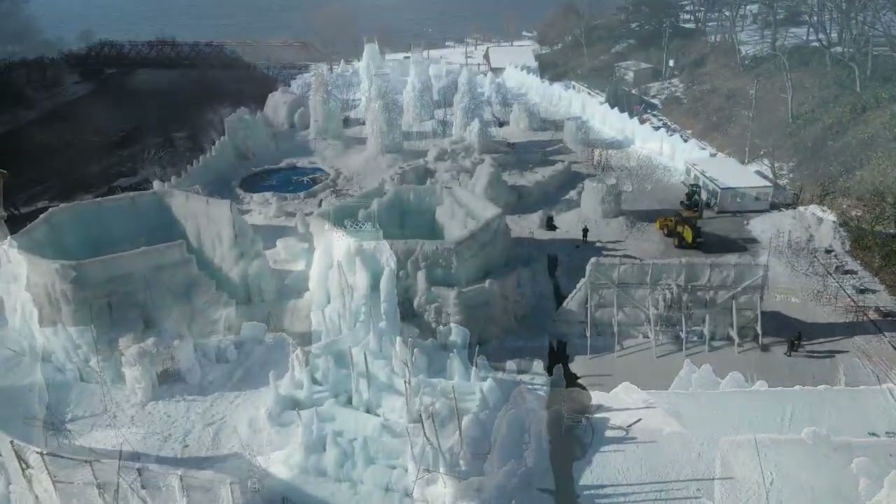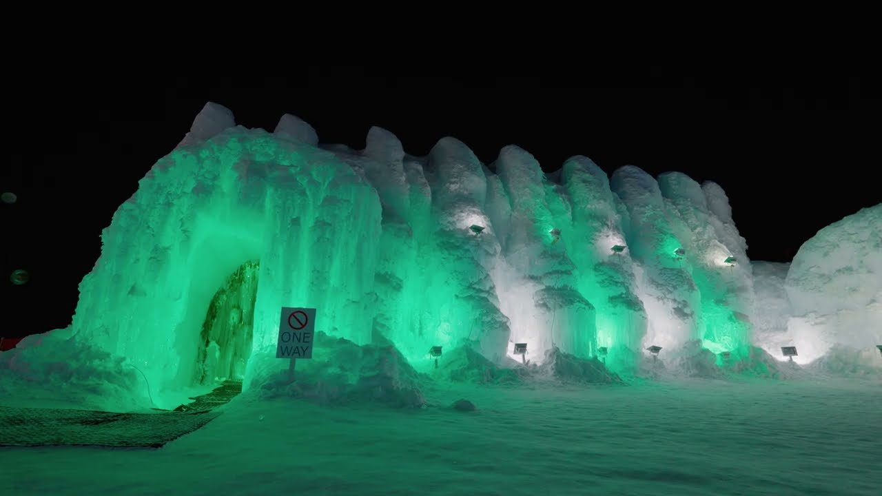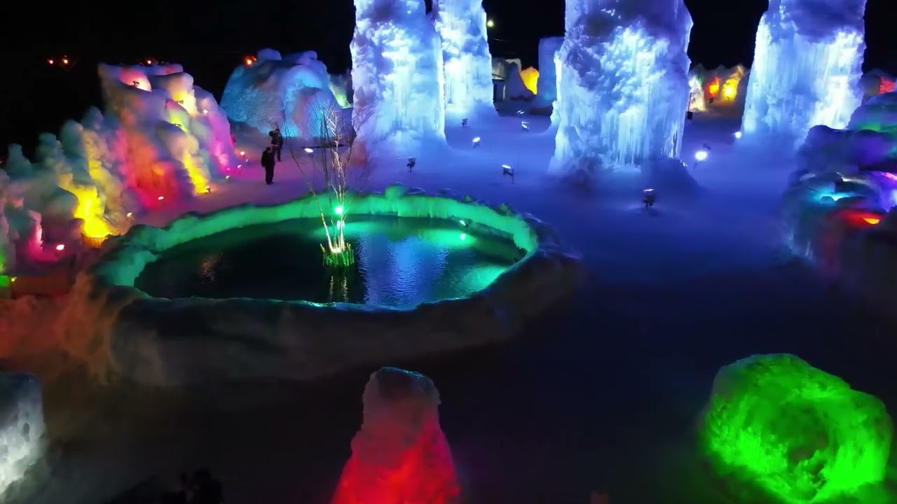支笏湖の湖水をスプリンクラーで吹き付け凍らせた、大小様々な氷のオブジェが立ち並ぶ、北海道を代表する冬の祭典。